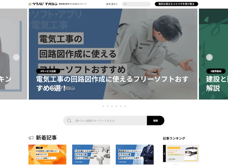 年間100万人の建設業の方々が閲覧する「ツクノビマガジン」上にて各サービスを掲載させていただくことで更なる認知拡大を実現します。